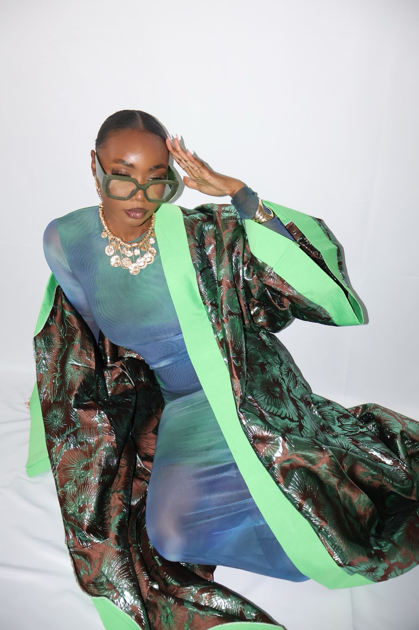 Kimono en brocard de confection artisanale, coupe droite et ample.